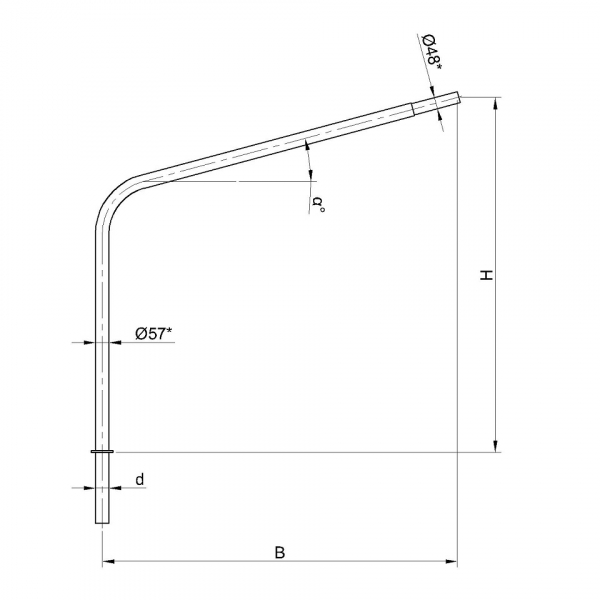 Однорожковые кронштейны К1-2,5-1,5-1-1 предназначен для крепления светильника на трубчатой опоре освещения. Завод опор освещения «Альдекс» изготавливает однорожковые консольные кронштейны из стального проката. Собственное производство позволяет выполнять изделия надлежащего качества и в кратчайшие сроки. Конструкция однорожковых кронштейнов К1-2,5-1,5-1-1. Конструкция консольных однорожковых кронштейнов К1-2,5-1,5-1-1 представляет собой гнутую металлическую трубу заданных размеров.