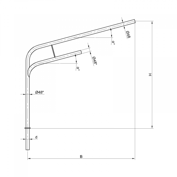 Двухрожковые кронштейны К9-1,5-1,5-1-1 предназначены для крепления светильника на трубчатой опоре освещения.