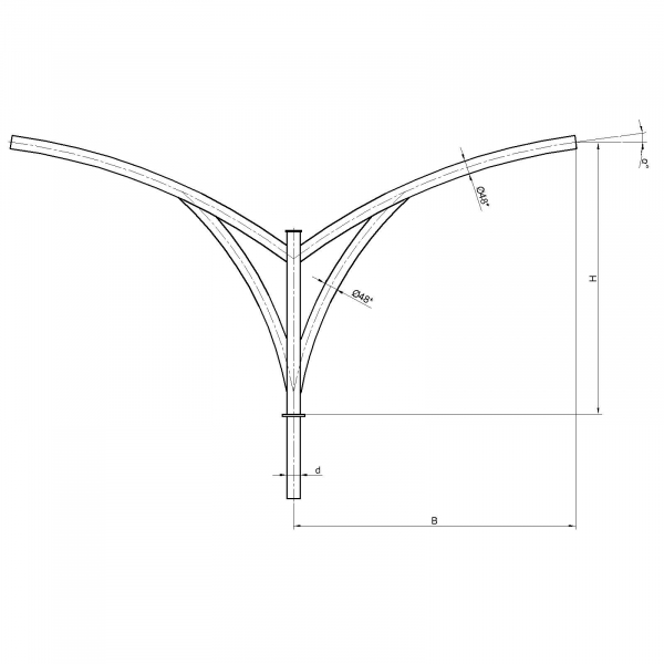 Двухрожковые кронштейны К79-1,0-1,0-1-1 предназначены для крепления светильника на трубчатой опоре освещения.