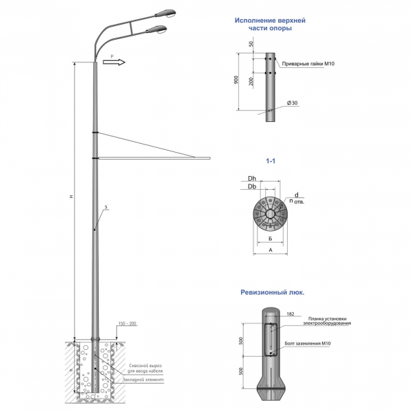 Опора ТФГ-3000-9,0-02-ц — опора трубчатая фланцевая применяется для установки оборудования уличного освещения и одновременной прокладки линий электропередач городского наземного электротранспорта, размещения рекламных и информационных щитов.