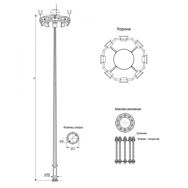 Прожекторная мачта освещения металлическая оцинкованная ПМО-20, изготовленная по ГОСТ.
